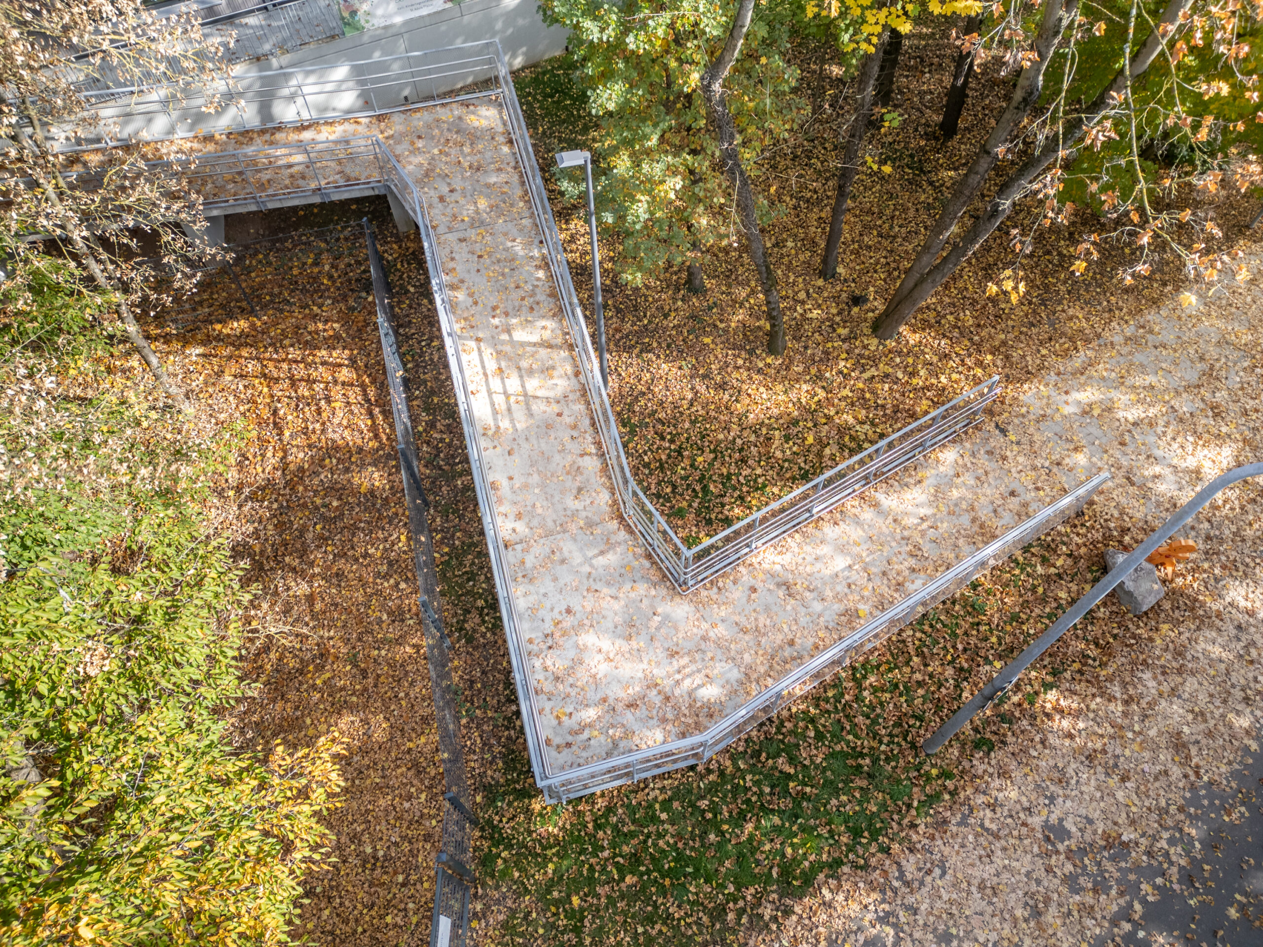 Aufgrund der Lage im Überschwemmungsbereich der Mosel wurde der Bau aufgeständert; die barrierefreie Erschließung erfolgte über Rampe. So wird dem Inklusiosgedanke Rechnung getragen.